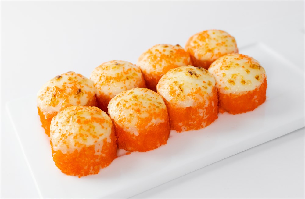 Крем краб, омлет, масаго, кунжут, сырный соус, унаги соус