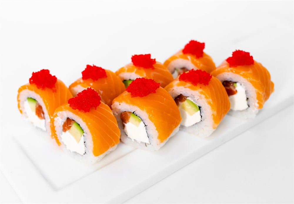 Лосось, авокадо, миасаго, сыр сливочный