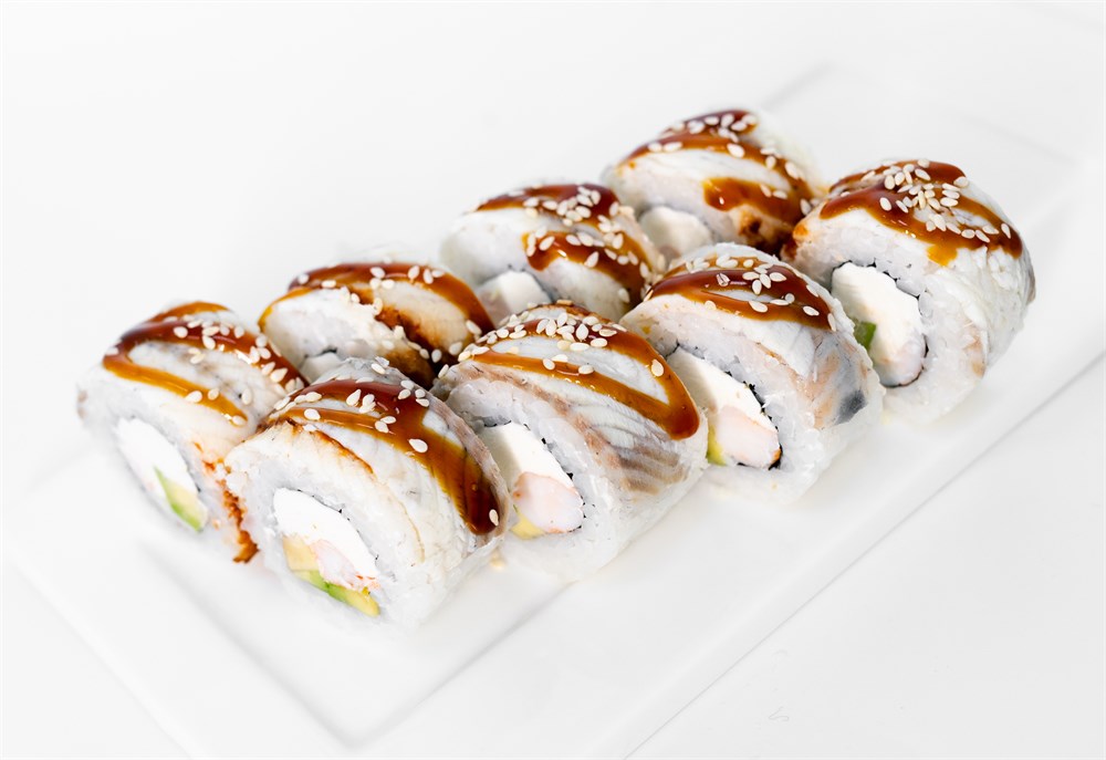 Угорь, авакадо, унаги соус, сливочный сыр, кунжут