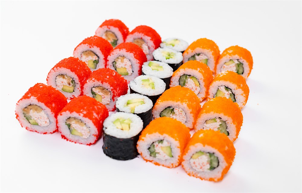 Лосось терияки, филодельфия в масаго, морская делюкс, беби кани, унаги ролл, премиум ролл, тигровый вкус