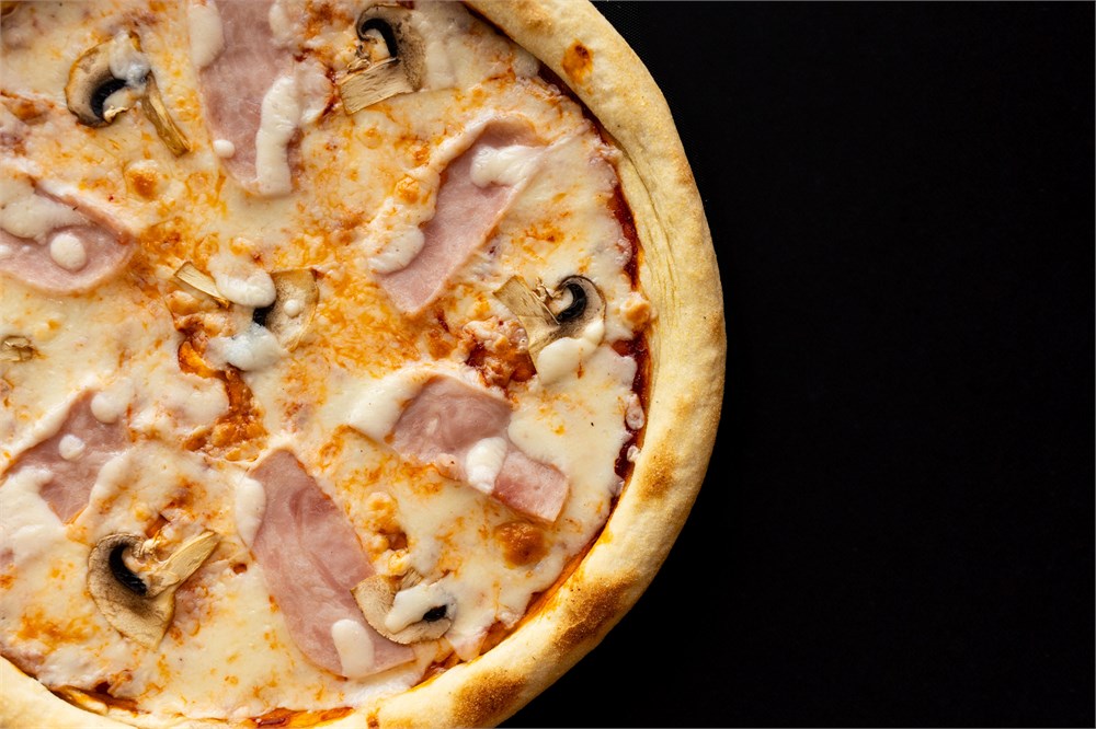 Ветчина, шампиньоны, пицца - соус,моцарелла, пармизан.