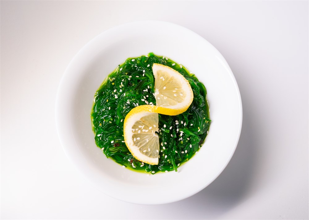 Чука, кунжут, ореховый соус, лимон.