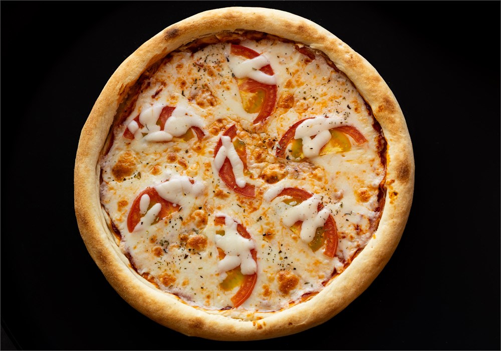 Цыпленок копченный, дорблю, моцарелла, пармезан, томаты, сливочно - часночный соус.